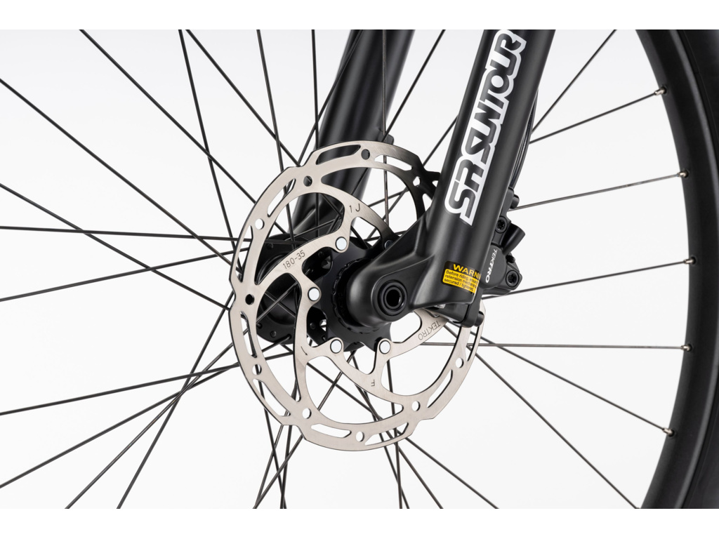 - Brzdy: Tektro HD-M535, 4 pistons, resin pad, 180 mm