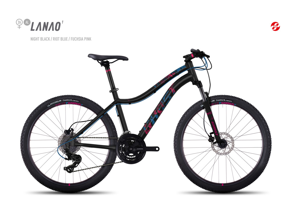 Ghost Lanao 1 26 je dámsky bicykel vhodný pre dievčatá a dámy s výškou nad 135 cm. Tento cenovo dostupný model je ideálnym prechodom medzi detským a klasickým horským bicyklom. Medzi vlastnosti patrí odpružená vidlica RST, mechanické kotúčové brzdy a komponenty Shimano s prevodmi 3x8. To všetko je namontované na osvedčenom, ľahkom hliníkovom ráme.