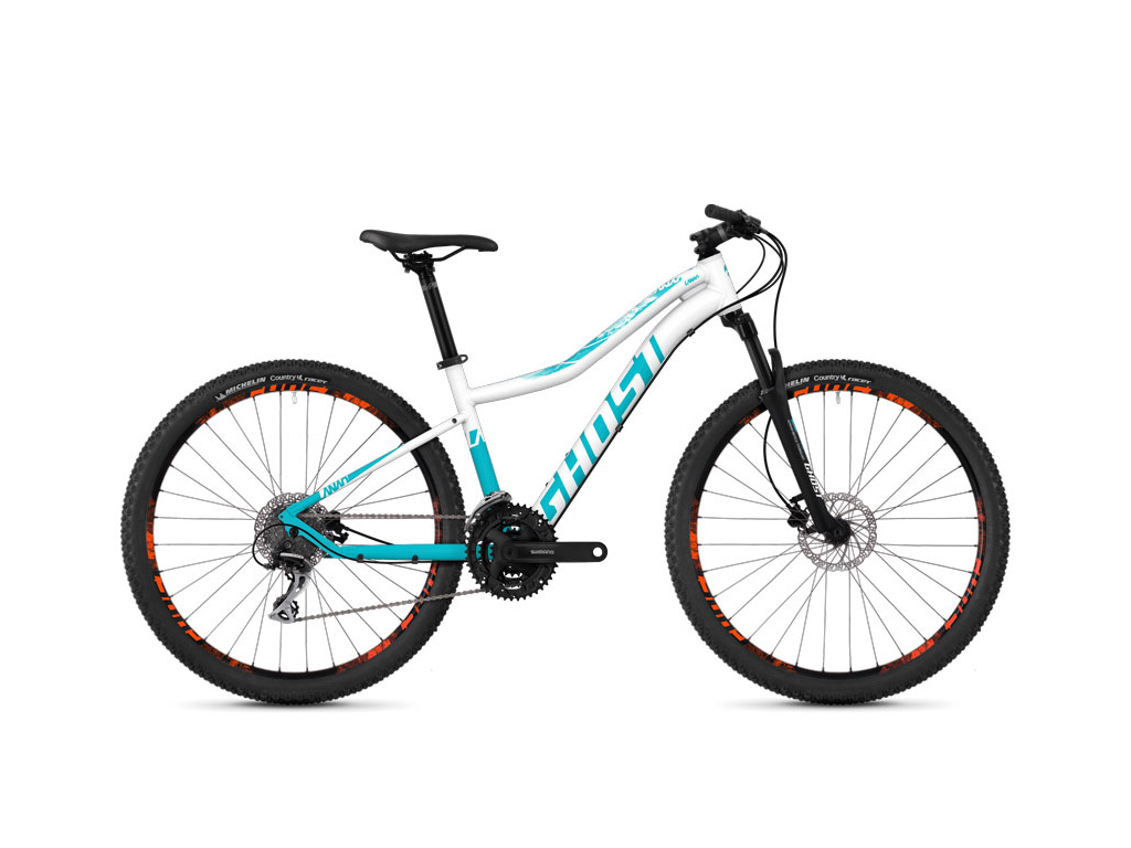Ghost Lanao 2.7 je dámsky horský bicykel s 27,5-palcovými kolesami vhodný na rekreačnú jazdu. Ľahký hliníkový rám je vybavený odpruženou vidlicou RST Blaze s uzamykaním, hydraulickými kotúčovými brzdami a komponentmi Shimano s prevodníkom Acera a 3x8