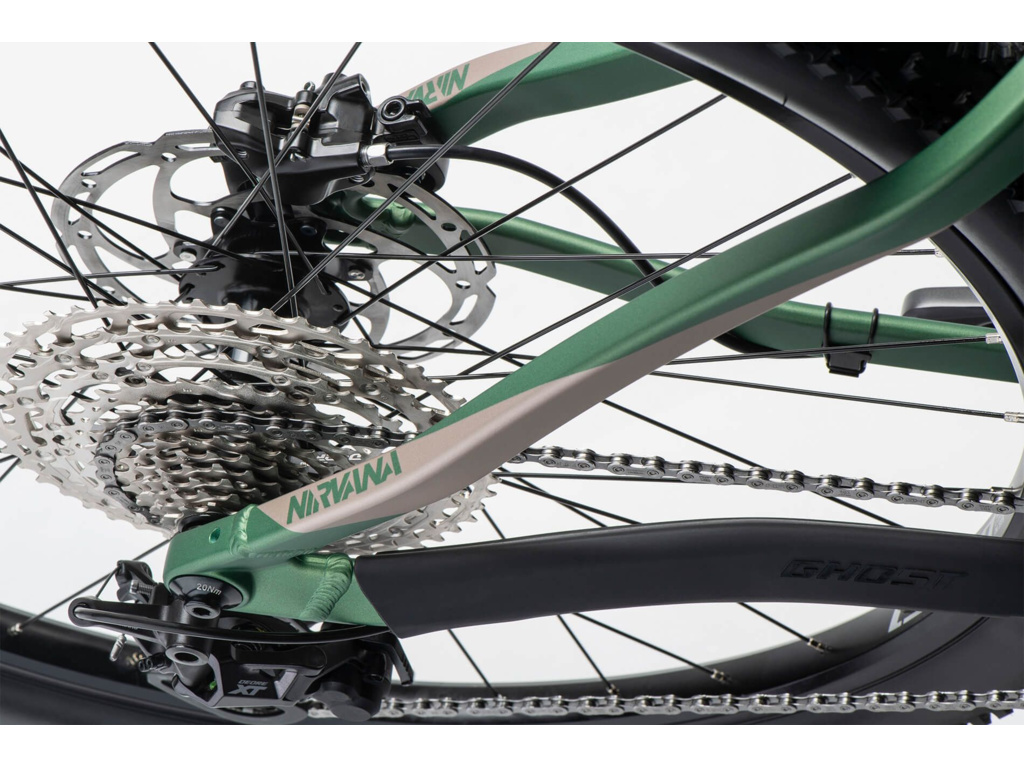 GHOST Nirvana je nový model horského bicykla s množstvom unikátnych vychytávok. Nirvana na prvý pohľad upúta pozornosť minimalistickým hliníkovým rámom. Jazdca však najviac dostane dokonalá geometria pod názvom SuperFit®. Geometria rámu sa pri vývoji ladí podľa starostlivo vytvoreného algoritmu, založeného na desiatkach tisíc biometrických dát rôzne vysokých jazdcov. Ďalším krokom je optimalizácia dĺžky kľuk, predstavcov a šírky riadidiel. Celý koncept ideálnej geometrie je doplnený o vzduchovú vidlicu so 120 mm pre veľkosti S-XL a 100 mm zdvihu pri veľkosti XS. Rovnako ako 27,5“ kolesá pre veľkosti XS-S a 29“ pre vyšších jazdcov (M-XL). Nech už je výška postavy jazdca akákoľvek, tento bicykel sadne ako rukavica šitá na mieru. Všetky 3 perfektne osadené modely Base/Essential/Universal majú veľa detailov, ktoré oceníte pri jazde v teréne, na traile ale aj v meste. NIRVANA je perfektnou vstupnou bránou a zároveň spoľahlivým sprievodcom po svete mountain bikingu.
