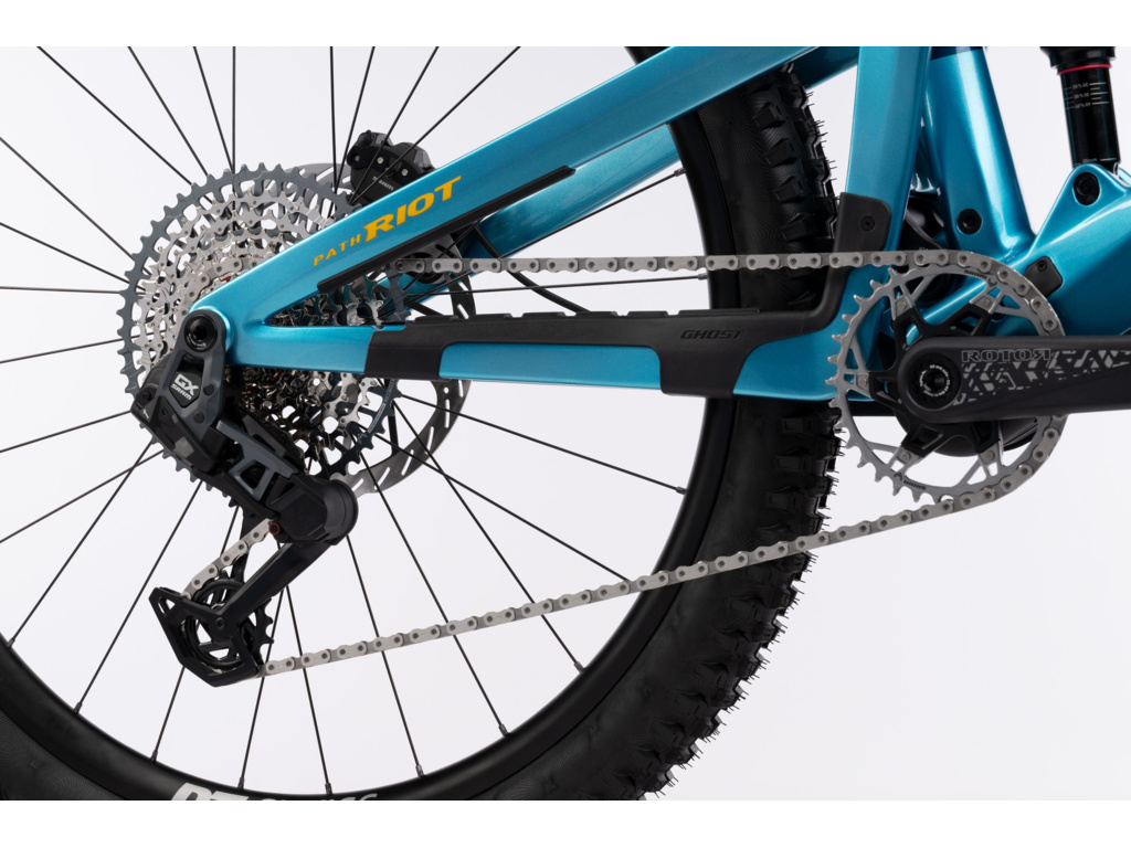 Na trailech se Path Riot LTD chová jako čistokrevné all-mountain kolo. Oceníte 29“ kola a plně integrovanou teleskopickou sedlovku Eightpins s extra dlouhým zdvihem. Geometrie i osazení směřují k maximálnímu výkonu – vpředu pracuje vidlice Rockshox Lyric Ultimate se zdvihem 150 mm, vzadu tlumič Rock Shox Super Deluxe Ultimate RC2T se zdvihem 140 mm. Zadní stavba využívá systém TractionLink, tedy řešení s virtuálním čepem, které zajišťuje optimální cit pro terén a výbornou trakci po celou dráhu odpružení zadního kola. Kolo tak zůstává aktivní a citlivé, aniž by se ztrácela účinnost při šlapání.