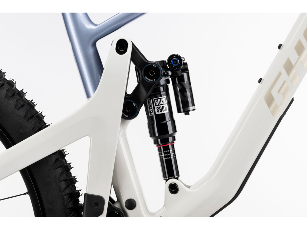 Základom rámu modelu RIOT TR/AM je jednodielna karbónová zadná stavba, ktorá je lisovaná ako celok pre dosiahnutie maximálnej tuhosti a minimálnej hmotnosti. Táto konštrukcia zabezpečuje precízny prenos sily a presné vedenie bicykla v zákrutách, zároveň eliminuje nežiaducu flexiu pri agresívnej jazde. Pomer tuhosti a hmotnosti ideálne dopĺňa citlivosť systému TractionLink, takže bicykel pôsobí stabilne, predvídateľne a presne reaguje na každý podnet.