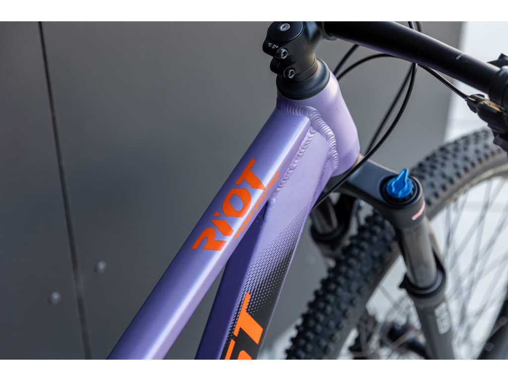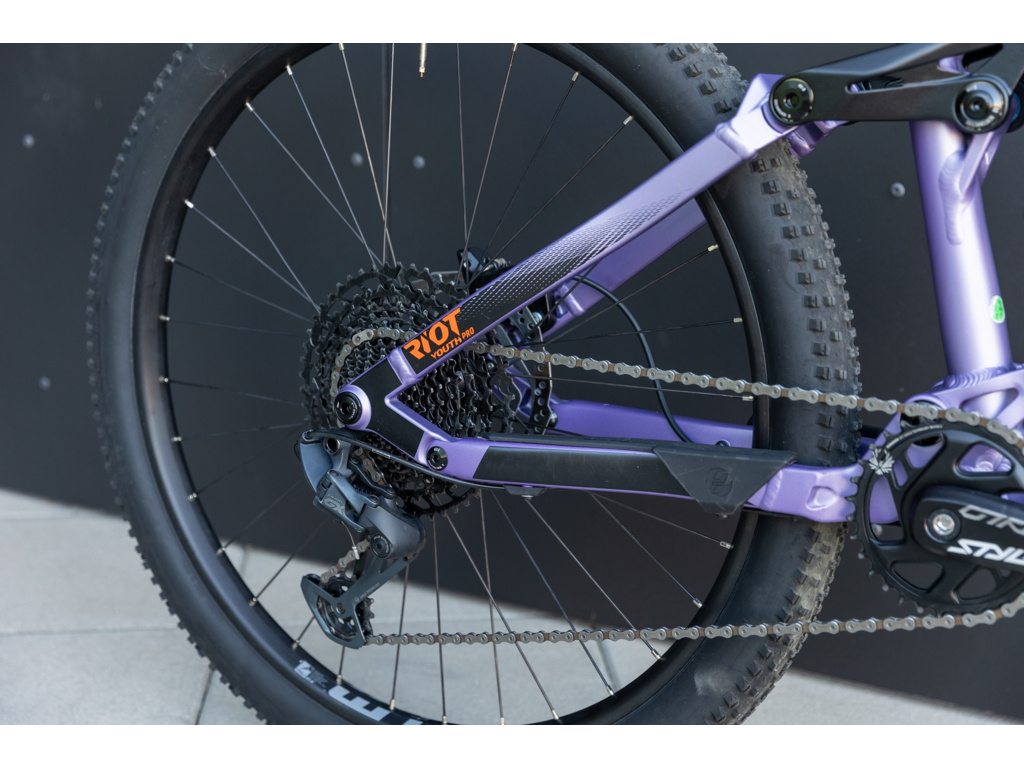Model RIOT Youth Pro je celoodpružený MTB bicykel pre juniorov. Jeho ľahký hliníkový rám je vybavený veľkými 27,5 palcovými kolesami, napriek tomu je určený bikerom s výškou postavy od 140 do 160 cm. Model je osadený vzduchovou vidlicou SR Suntour XCR34 Air so zdvihom 130 mm, takže pohltí akékoľvek nerovnosti, zadnou prehadzovačkou SRAM, brzdami Shimano a 1x12 rýchlostnou sadou. Kvalitné komponenty zaisťujú spoľahlivosť, bezpečnosť a hladký prechod z detského bicykla na výkonný MTB stroj. Moderná trailová geometria zaručuje vyváženú jazdu a plášte WTB Ranger 2.3 Comp vysokú priľnavosť. Súčasťou výbavy je aj teleskopická sedlovka so zdvihom 125 mm, vďaka ktorej môžete meniť výšku sedla pri jazde bez zastavenia.