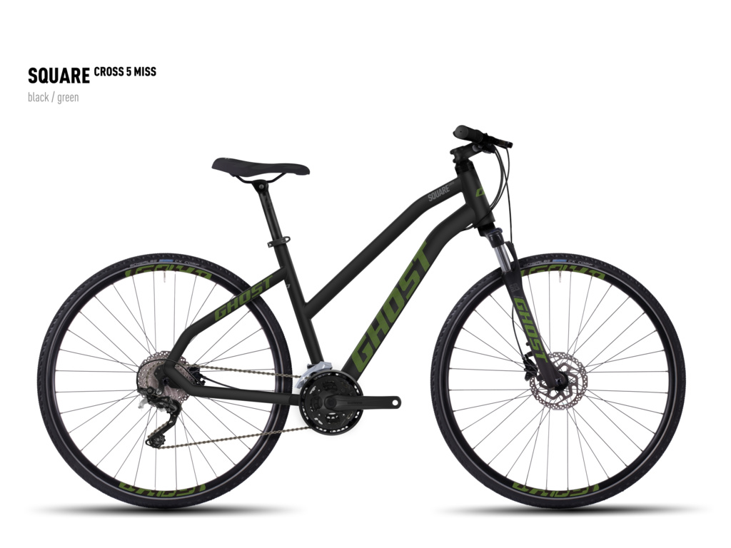 Užívajte si prírodu! Nový hliníkový rám Ghost Square Cross 5 Miss je vybavený odpruženou vidlicou s uzamykaním, hydraulickými kotúčovými brzdami a komponentmi Shimano s 3x9 prevodmi. Je to ideálna kombinácia na spoznávanie krajiny.