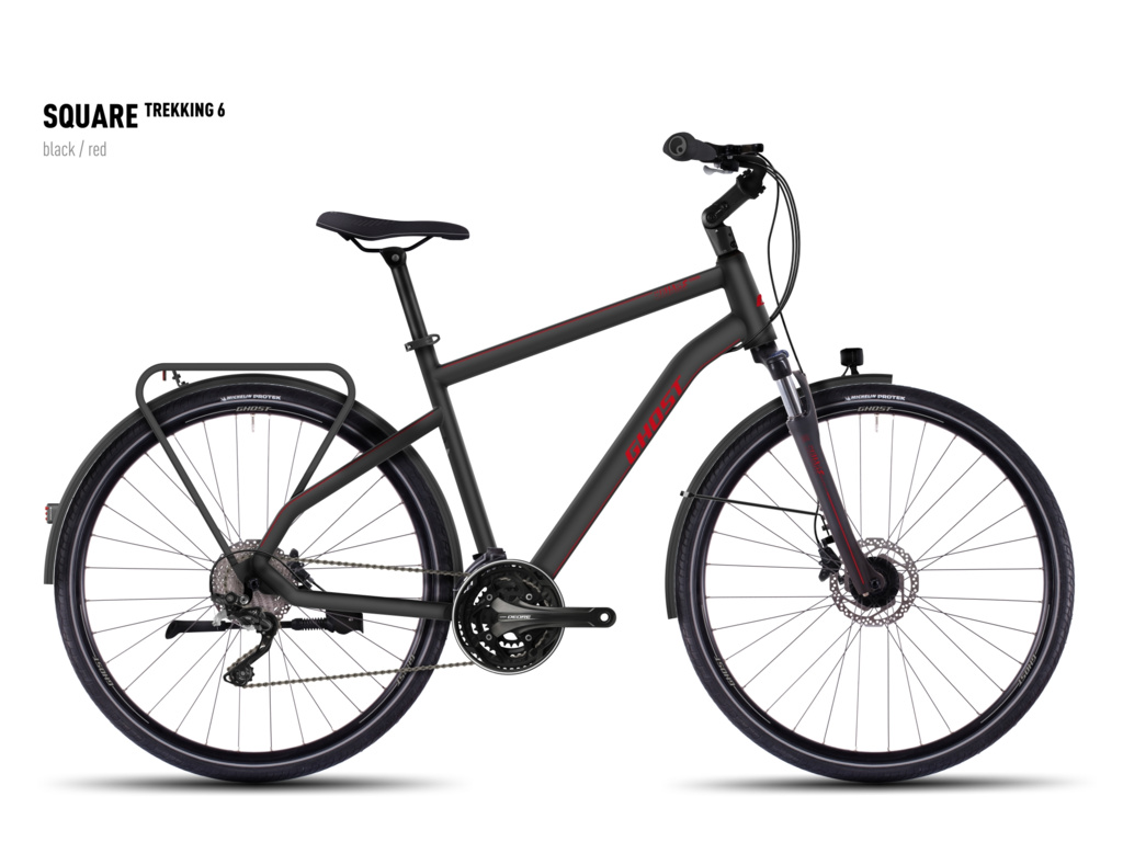 Dobre vybavený pánsky trekingový bicykel pre náročných jazdcov. Ideálny spoločník na dlhé trasy a každodenné dochádzanie do práce. Úplne nový hliníkový rám s výrazným tvarovaním, vzduchovou odpruženou vidlicou a kvalitnými komponentmi Shimano 3x10 s hydraulickými brzdami. Toto je Ghost Square Trekking 6.