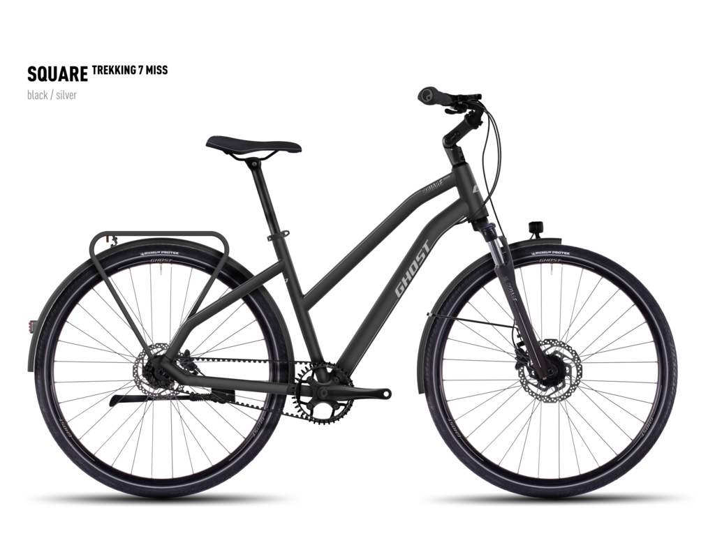 Dámsky trekingový bicykel Ghost Square Trekking 7 s remeňovým pohonom zaručuje absolútne tichú prevádzku a spoľahlivý výkon. Prehadzovačka Shimano Alfine je skrytá v zadnom náboji a má 8 rýchlostí. Dobre ovládateľné kotúčové brzdy poskytujú potRebnú bezpečnosť pri klesaní.