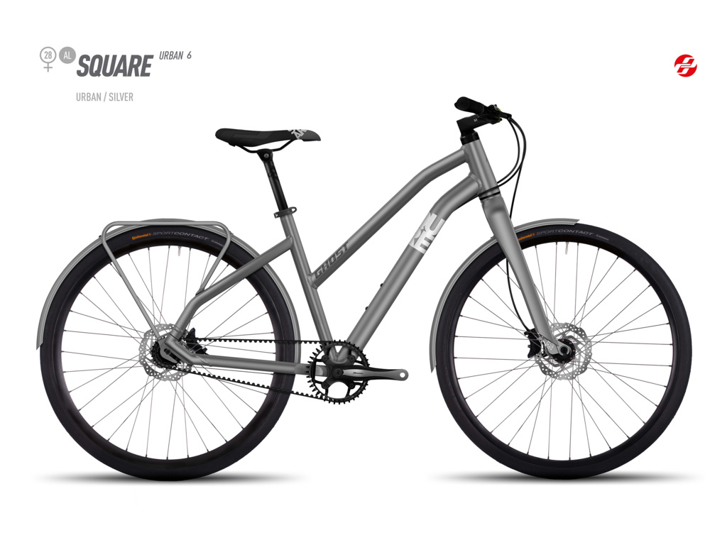 Square Urban je rad štýlových mestských bicyklov s ľahkou hliníkovou prednou vidlicou a všetkou výbavou, ktorú potrebujete na bezpečnú jazdu po meste. Hladké plášte Continental Sport Contact II SL vám umožnia na cyklotrasách a v parkoch jazdiť ako vietor.