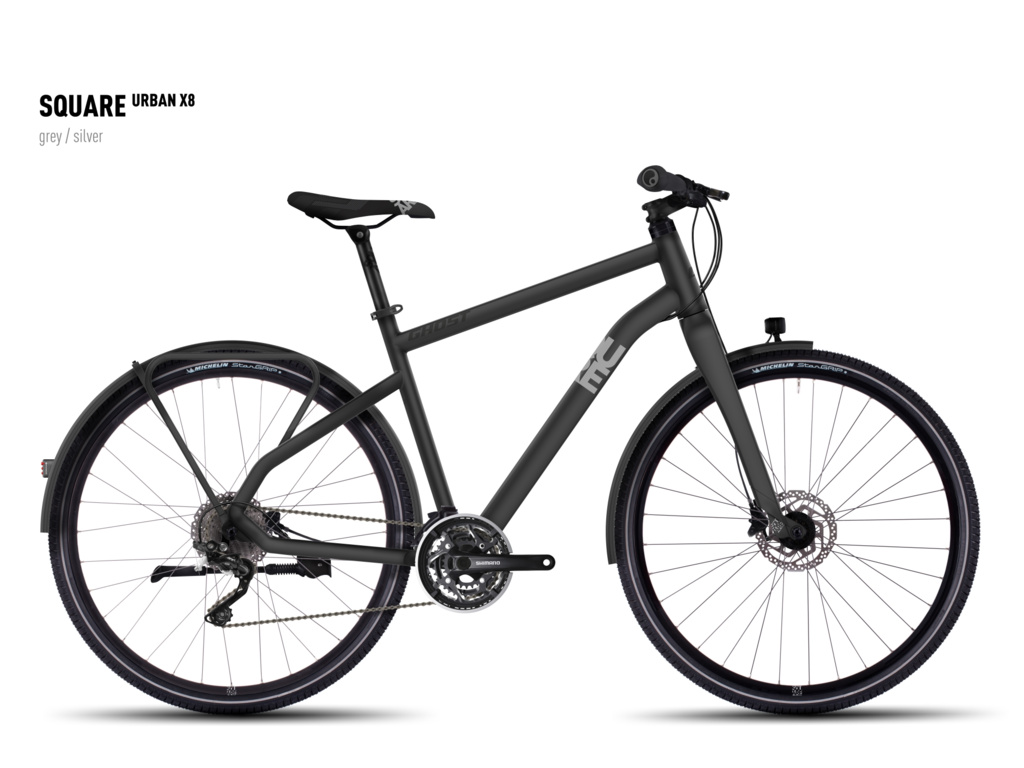 Square Urban je nový rad mestských bicyklov s ľahkou hliníkovou prednou vidlicou a všetkou výbavou, ktorú potRebujete na bezpečnú jazdu po meste. Vďaka rýchlym pneumatikám Michelin Stargrip budete na cyklotrasách a v parkoch jazdiť ako vietor.