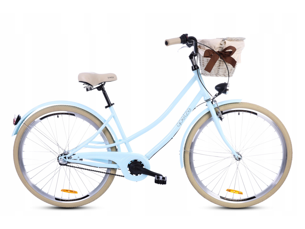 Elegantný mestský bicykel v retro dizajne, vhodný na jazdu po meste a na vidieku. Môžete sa spoľahnúť na trojrýchlostné radenie Shimano Nexus v zadnom náboji, zadnú protipreklzovú tyč a prednú ráfikovú V-brzdu. Bicykel je vybavený praktickými doplnkami, ako sú blatníky, prútený košík na riadidlách, zadný nosič, bezpečnostný kryt reťaze, stojan na odkopávanie a predné a zadné batériové osvetlenie LED.