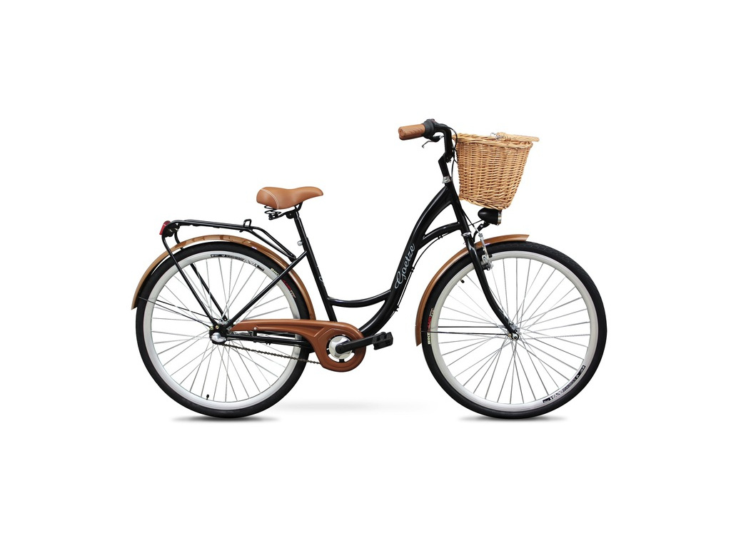 Elegantný mestský bicykel v retro dizajne, vhodný na jazdu po meste a na vidieku. Môžete sa spoľahnúť na trojrýchlostné radenie Shimano Nexus v zadnom náboji, zadnú protipreklzovú tyč a prednú ráfikovú V-brzdu. Bicykel je vybavený praktickými doplnkami, ako sú blatníky, prútený košík na riadidlách, zadný nosič, bezpečnostný kryt reťaze, stojan na odkopávanie a predné a zadné batériové osvetlenie LED.
