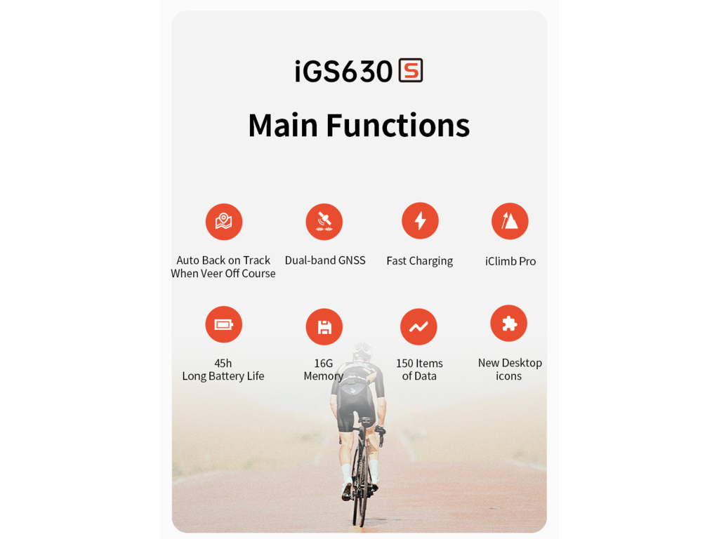 iGPSport iGS630S je pokročilá cyklistická GPS navigácia,ideálna pre cestných aj horských cyklistov. Ponúka 2,8" farebný nedotykovýdisplej (240×400 px) v aerodynamickom tele s výškou len16,5 mm.