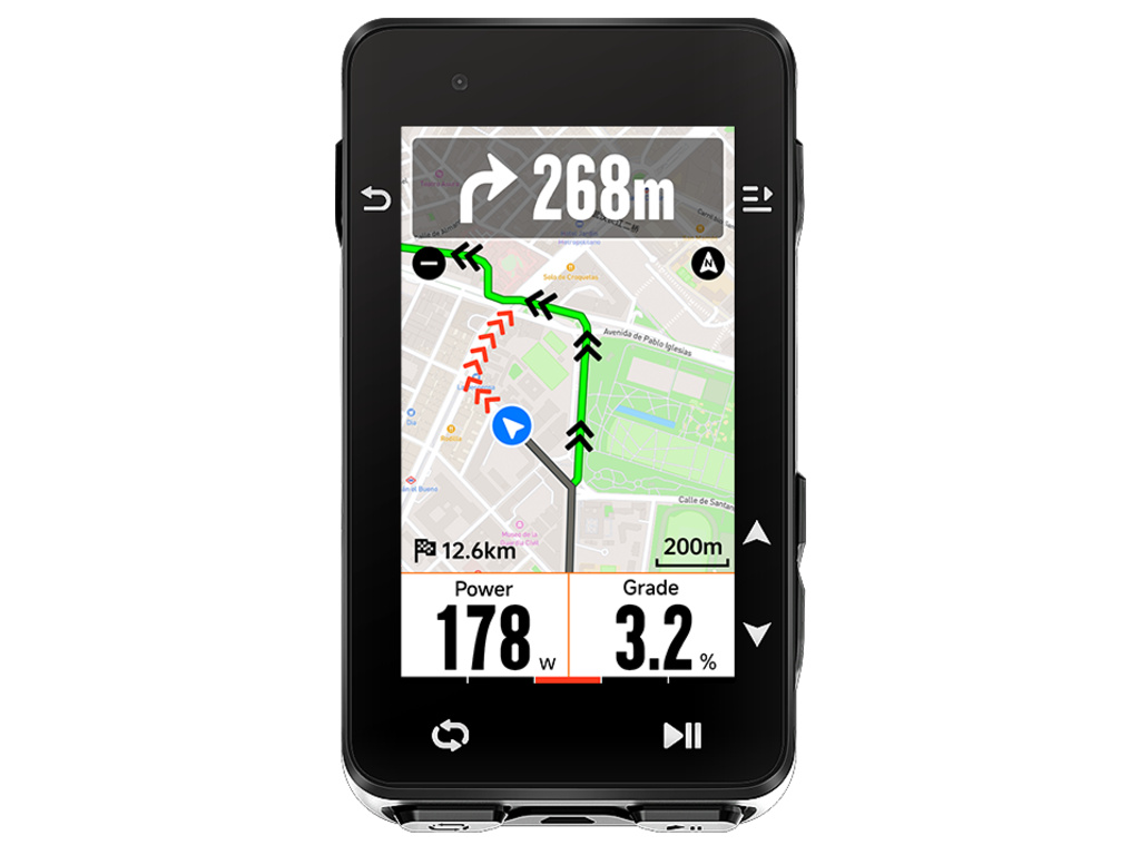 Vďaka citlivým prijímačom GPS, GLONASS, Galileo, BeiDou aQZSS poskytuje presné sledovanie trasy a možnosť navigácie aj v náročnomteréne. Vstavané offline mapy s turn-by-turn navigáciou umožňujúpohodlné plánovanie trás aj bez pripojenia na internet. FunkciaiClimbPro zobrazuje profily stúpaní, čo pomáha lepšie rozložiťenergiu pri náročných výjazdoch. Podporuje pripojenie ANT+ a Bluetoothsenzorov (srdcová frekvencia, rýchlosť, kadencia, výkon) aj integráciu sosmart svetlami a radarom. Je kompatibilný so systémamiShimano Di2, SRAM eTap a Campagnolo EPS a ponúka prepojenie saplikáciami Strava a TrainingPeaks.