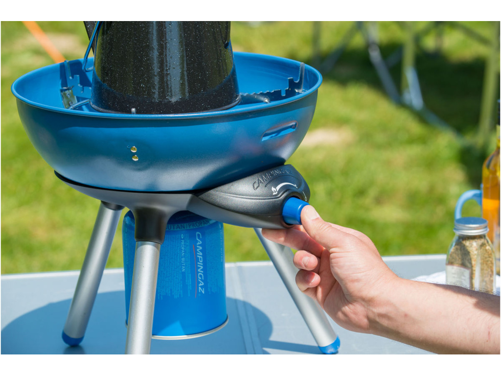 Základný kempingový doplnok pre Party Grill® 200! Tento kompaktný, prenosný varič ponúka rôzne možnosti využitia ako gril alebo klasický varič. Dodáva sa spolu s: krytom, držiakom na hrniec a grilovacím roštom. Odnímateľné nohy a uzamykateľné veko uľahčujú jeho prepravu a skladovanie. Je kompatibilný s kazetou Campingaz CV Plus, ktorú možno odpojiť a znovu pripojiť, aj keď nie je prázdna. Príkon: 2000 W; spotreba plynu: 145 g/h; piezoelektrické zapaľovanie; prevádzkový čas: kartuša CV 470 plus - 3 h, kartuša CV 300 plus - 1 h 40 min; zdroj energie: kartuša CV 300 plus, kartuša CV 470 plus; rozmery: Ø32 x 33 cm; hmotnosť: 2,84 kg