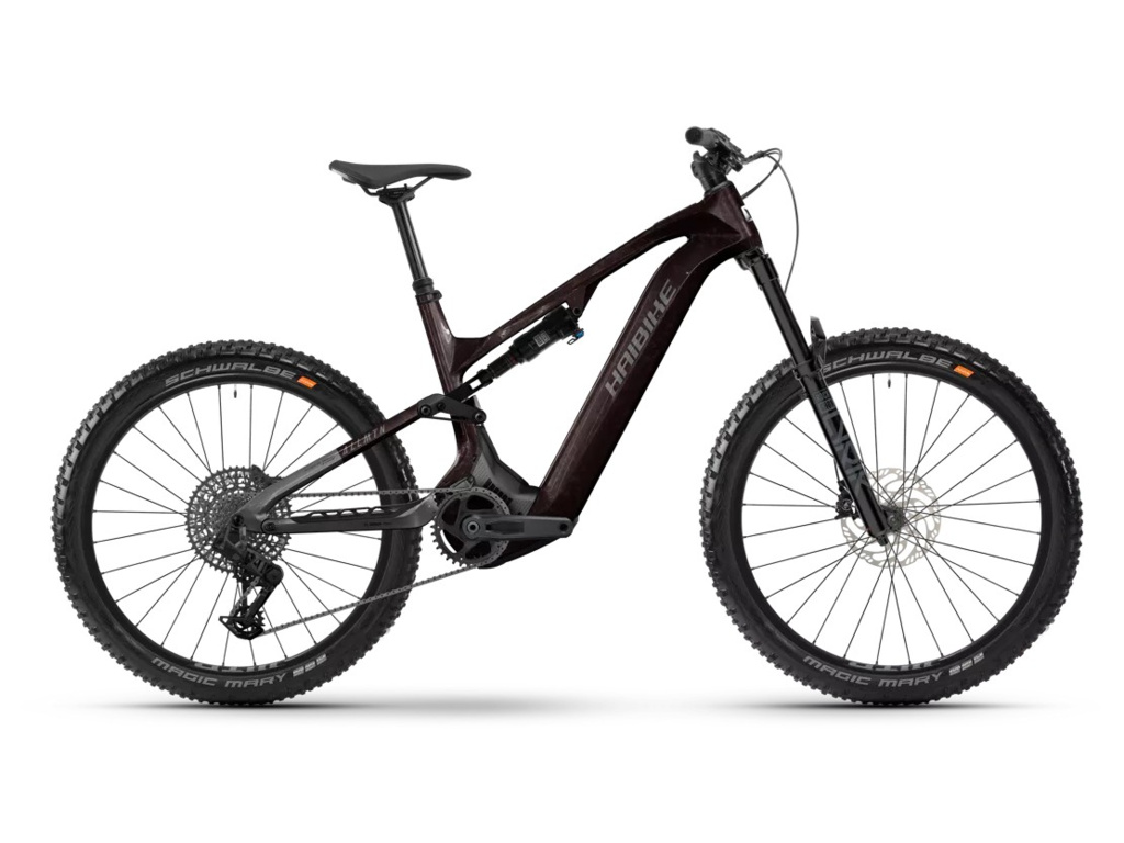 Celoodpružený elektrobicykel Haibike AllMtn CF 9 kombinuje karbónový rám, motor Bosch Performance CX a batériu s kapacitou 800 Wh. Istotu v teréne zabezpečuje odpruženie RockShox so zdvihmi 160 mm a mullet kombinácia kolies 29/27,5.