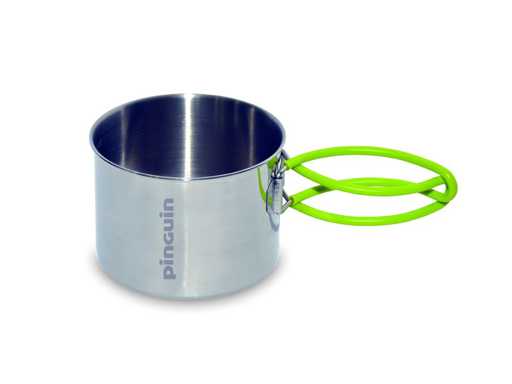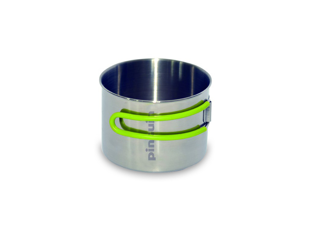 Plechový pohár s objemom 0,5 l so sklopnými rukoväťami z odolnej a nárazuvzdornej nehrdzavejúcej ocele AISI 201. Neobsahuje BPA, olovo a ftaláty.Rukoväť je vytvorená z pevného drôtu z nehrdzavejúcej ocele a potiahnutá žiaruvzdorným silikónom.Na vnútornej strane nádoby sú vyrazené ukazovatele objemu s označením 200 ml, 350 ml a 500 ml.