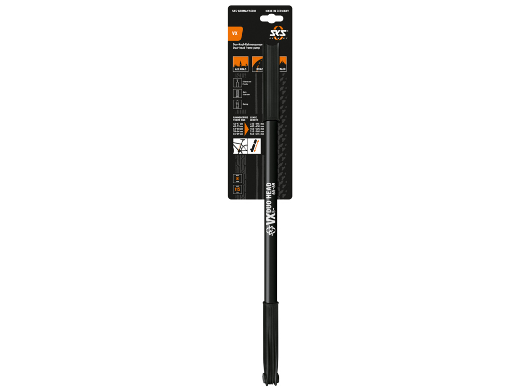 Model SKS Vx je rámová pumpa SKS, ktorá sa rozpiera medzi sedlovou trubkou a hlavovou trubkou. Žiadna zložitá montáž – jednoducho nasadíte a môžete vyraziť.