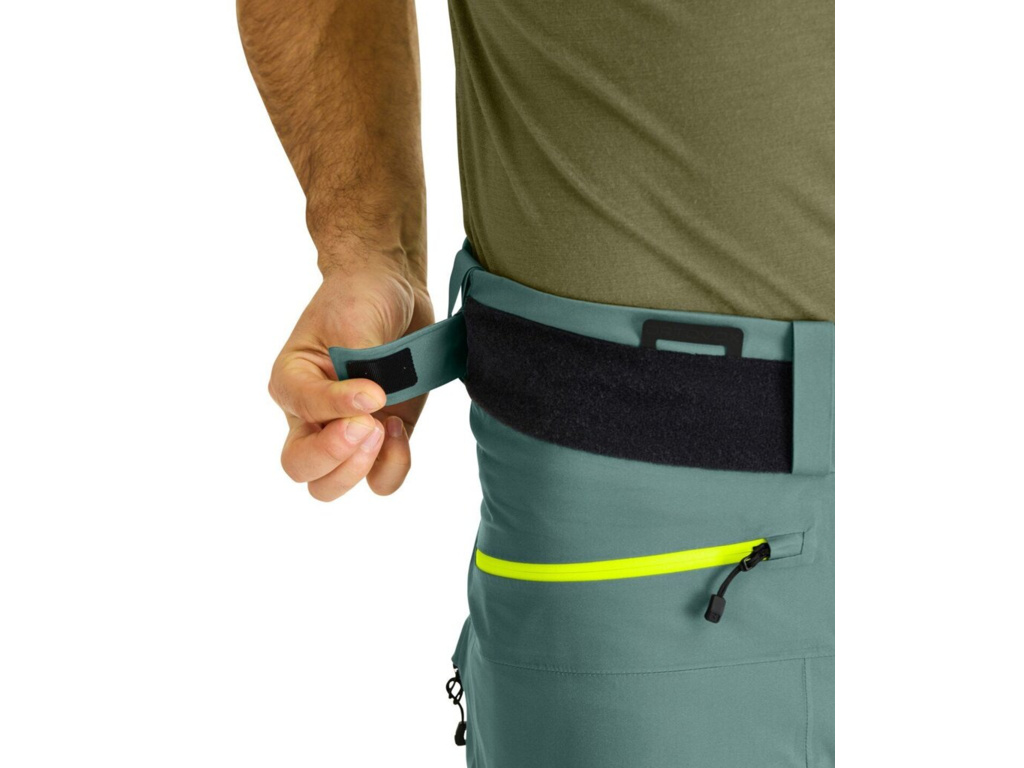 Kalhoty mají množství praktických kapes, do kterých uložíte veškeré vybavení, které potřebujete mít po ruce. Jedna přední kapsa je ideální na drobnosti jako například klíče a peněženka. Na stehnech jsou dvě zvětšené kapsy, do kterých můžete uložit například šátek nebo náhradní rukavice. V pravé stehenní kapse nalezneš lehkou karabinku na uchycení lavinového vyhledávače. Kalhoty mají po bocích větrací zipy, takže vám ani při výšlapu nebude příliš teplo.