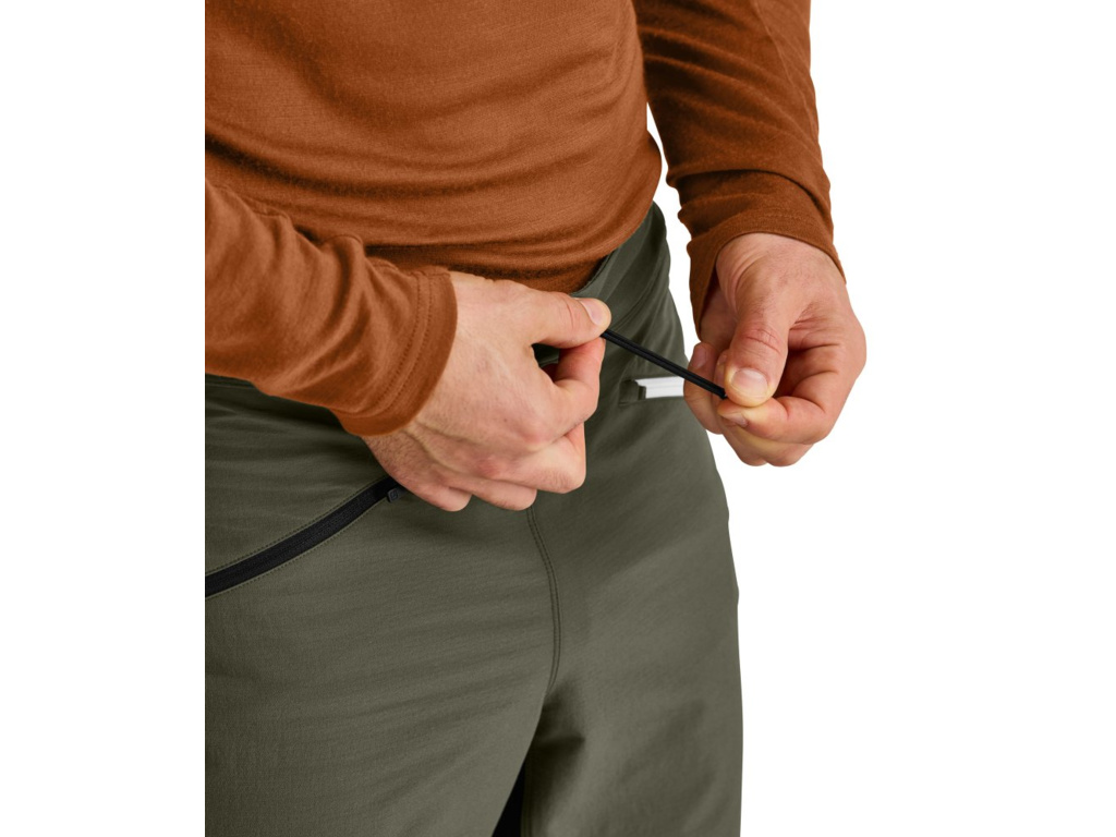 Nohavice kalhot ORTOVOX PUNTA BERRINO PANTS M jsou skvěle přizpůsobeny pro kompatibilitu s lyžařskými botami. Pomocí zipu u kotníku je rozepneš a převlékneš přes lyžáky. Na oblast kotníků byl použitý velmi odolný softshell od značky Schoeller®, aby byly kalhoty odolné proti ostrým hranám lyží nebo maček.