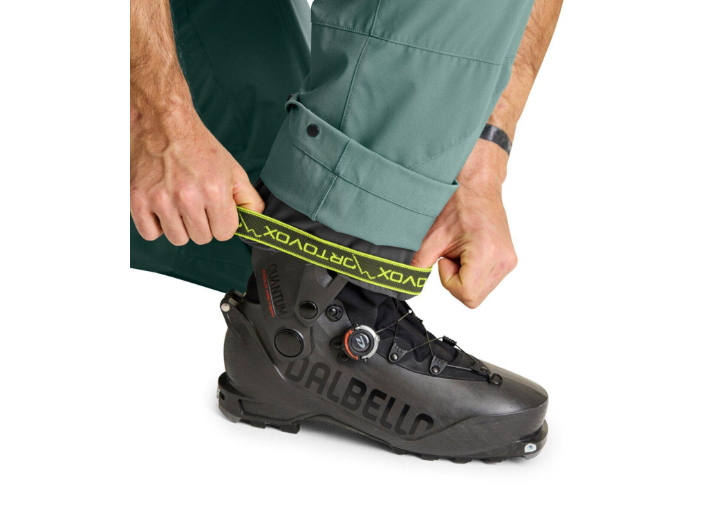 Když cesta za nejlepším prašanem vyžaduje náročný výstup na pásech, tam jsou kalhoty ORTOVOX MESOLA PANTS jako doma. Díky inteligentnímu mixu prodyšného softshellu a ochranného hardshellového materiálu poskytují tyto lehké freeridové kalhoty přesně ten výkon, který příslušné partie těla v horách vyžadují. Na lýtkách a přední straně stehen poskytuje spolehlivou ochranu před větrem a počasím materiál MERINO DEEP SHELL s vysoce výkonnou membránou DERMIZAX® NX. Zadní strana stehen, sed, boky a pas jsou ze softshellového materiálu MERINO AIRSOLATION, který je nejen měkký, prodyšný a větru a vodě odolný, ale poskytuje také velkou volnost pohybu.