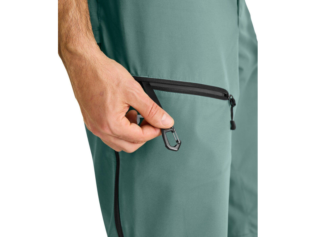 - Materiál MERINO AIRSOLATION - vysoce prodyšný, odolný proti větru a vodě, rychleschnoucí, lehký ale zároveň velmi odolný vůči oděru, strečový ve dvou směrech, ošetřený voděodolnou DWR úpravou bez obsahu PFC - zadní strana stehen, sed, boky a pas.