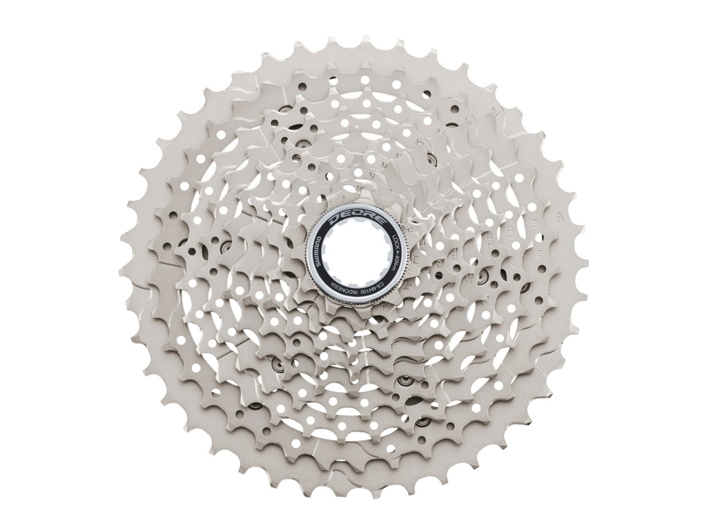 Nitovaná 10-rýchlostná oceľová kazeta z nového radu Shimano Deore M4100 s niklovou povrchovou úpravou. Poskytuje plynule nadväzujúce prevodové stupne a presné radenie.