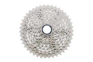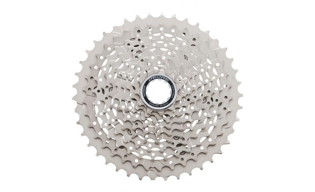 Nitovaná 10-rýchlostná oceľová kazeta z nového radu Shimano Deore M4100 s niklovou povrchovou úpravou. Poskytuje plynule nadväzujúce prevodové stupne a presné radenie.