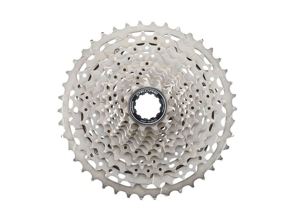 Kazeta Shimano s 11 rýchlosťami z novej série Deore M5100 s 11 nitovanými oceľovými pastorky.