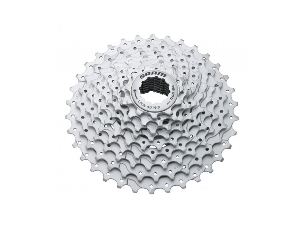 Kazeta Sram PG-970 pre 9-rýchlostné systémy, technológia Power glide II s kvalitnými oceľovými zubami.