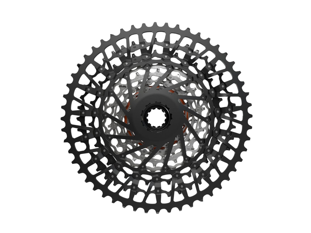 Kazeta T-Type je klíčovým důvodem, proč GX Eagle Transmission nabízí neuvěřitelný výkon při řazení v tahu, jak směrem nahorů, tak dolů. Díky svému kompletnímu designu X-SYNC je řazení ještě lepší, když šlapete tvrději. Niklová povrchová úprava poskytuje vysokou odolnost a zároveň tichý chod při řazení. Kompatibilita s řetězovou linkou 55 mm umožňuje mírnější úhel řetězu, delší životnost a zlepšenou přesnost. Rozsah kazety 520% má optimalizované převodové stupně s většími pastorky 38 a 44 zubů. S jasně označeným "Setup Cog" je instalace jednoduchá a bezchybná. Kazeta využívá designu PinDome pro převody 1-8 a jednodílného MINI-CLUSTERu pro převody 9-12.