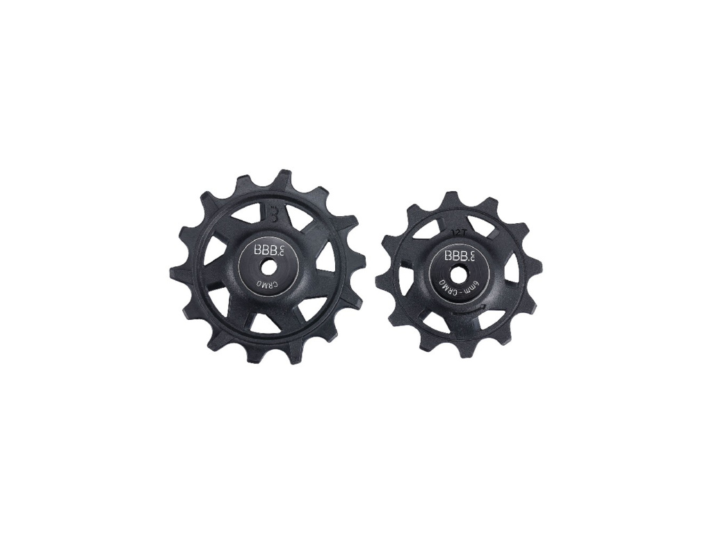 Vysokokvalitné 12- a 14-zubové zvončeky prehadzovačky BBB RollerBoys sú vyrobené zo špeciálneho kompozitného materiálu Grivory EMS so sklenenými vláknami. Valčeky sú vybavené kvalitnými utesnenými ložiskami.