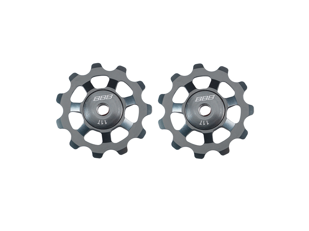 Vysokokvalitné 11-zubové prevodníky BBB AluBoys sú vyrobené z veľmi ľahkej zliatiny Alu a sú vybavené priemyselnými zapuzdrenými ložiskami. Valčeky sú určené pre vybrané prehadzovačky Shimano a Campagnolo.