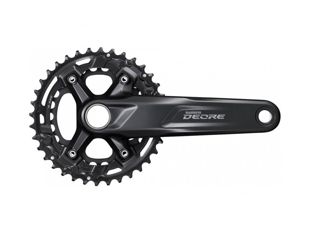 Kľuková sada Shimano Deore M4100 s dvoma 36 a 26 zubovými kľukami s dutou osou pre domček 68/73 mm. Kľuky sú určené pre zadnú konštrukciu rámu Boost a prehadzovačky sú namontované pomocou 4 skrutiek s BCD 96 a 64 mm.