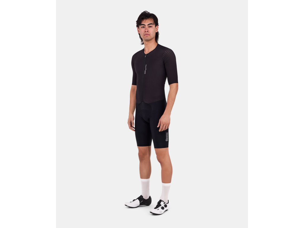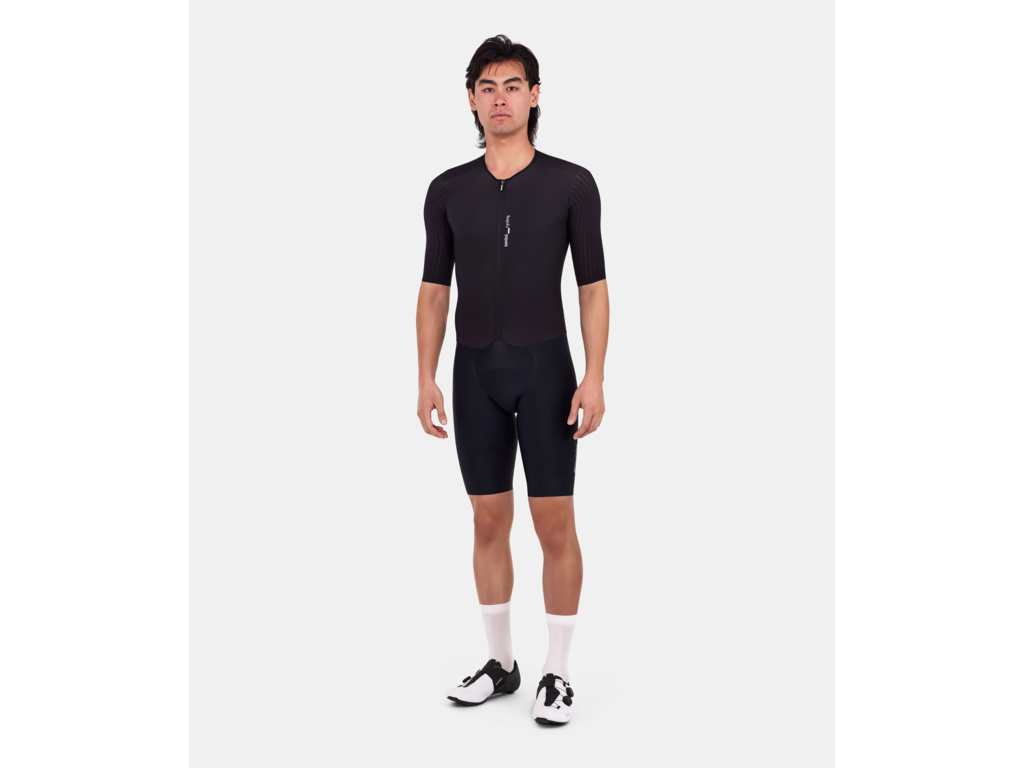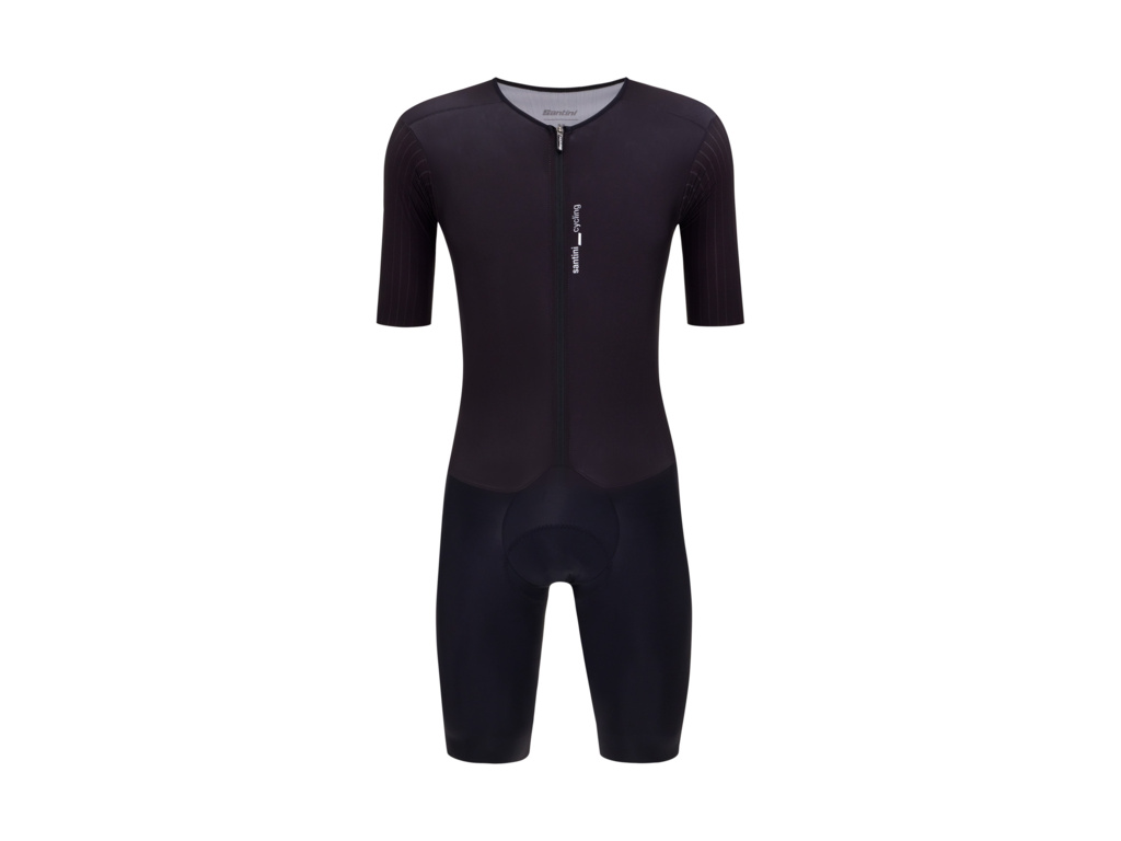 SANTINI Madss (MEGA AERODYNAMIC SPEED SHELL) je profesionálna pretekárska kombinéza, ktorá prináša bezkonkurenčný aerodynamický výkon. Je vyrobená z ľahkej a priedušnej Lycra tkaniny, ktorá zabezpečuje príjemný pocit sviežosti a dokonale prilieha k telu ako druhá koža. Nízky golier a aerodynamické rukávy s čisto strihanými okrajmi zaručujú presné a stabilné usadenie.