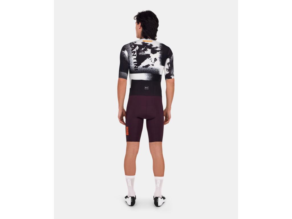SANTINI Madss (MEGA AERODYNAMIC SPEED SHELL) je profesionálna pretekárska kombinéza, ktorá prináša bezkonkurenčný aerodynamický výkon. Je vyrobená z ľahkej a priedušnej Lycra tkaniny, ktorá zabezpečuje príjemný pocit sviežosti a dokonale prilieha k telu ako druhá koža. Nízky golier a aerodynamické rukávy s čisto strihanými okrajmi zaručujú presné a stabilné usadenie.