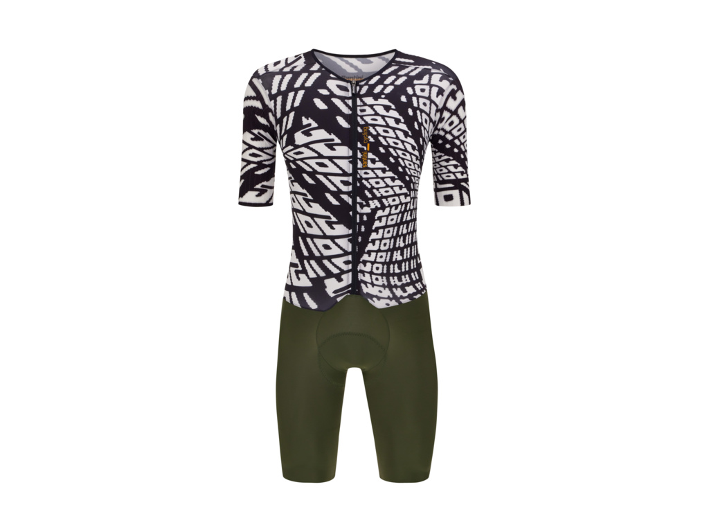 SANTINI Madss (MEGA AERODYNAMIC SPEED SHELL) je profesionálna pretekárska kombinéza, ktorá prináša bezkonkurenčný aerodynamický výkon. Je vyrobená z ľahkej a priedušnej Lycra tkaniny, ktorá zabezpečuje príjemný pocit sviežosti a dokonale prilieha k telu ako druhá koža. Nízky golier a aerodynamické rukávy s čisto strihanými okrajmi zaručujú presné a stabilné usadenie.