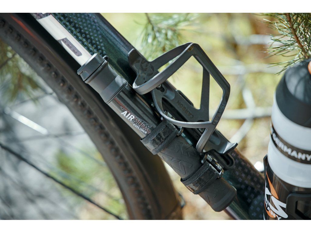 Čistý vzhľad držiaka na fľašu v matnej čiernej farbe je skutočným pútačom pre oči. A nielen to: DUAL SC kombinuje recyklované karbónové vlákna s nárazuvzdorným polyamidom. Materiál, ktorý nesie názov POLYCARBON, boduje silnými prednosťami: Vďaka 40 % podielu karbónu v košíku na fľašu je obzvlášť ľahký a zároveň zaisťuje vynikajúcu stabilitu.