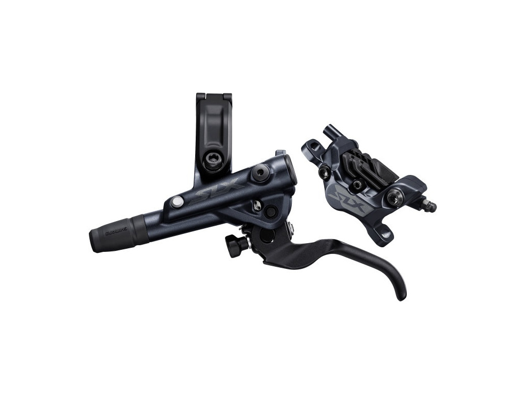 Úplne nové štvorpiestikové hydraulické kotúčové brzdy Shimano SLX BR-M7120.Dva protibežné keramické piestyTyp uchytenia: PM - Post MountDĺžka hadice: 1000 mmZávitnice: spekané s chladičomMechnizmus SERVO WAVE s krátkym zdvihomBrzdová páka s 2 prstamiVolné nastavenie dráhy pákyNastaviteľná vzdialenosť páky od riadidiel pomocou kolesaPríprava na jednotnú montáž brzdovej páky a mechanizmu radenia I-SpecIIBrzdová kvapalina: Minerálny olejNie adaptér