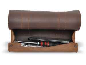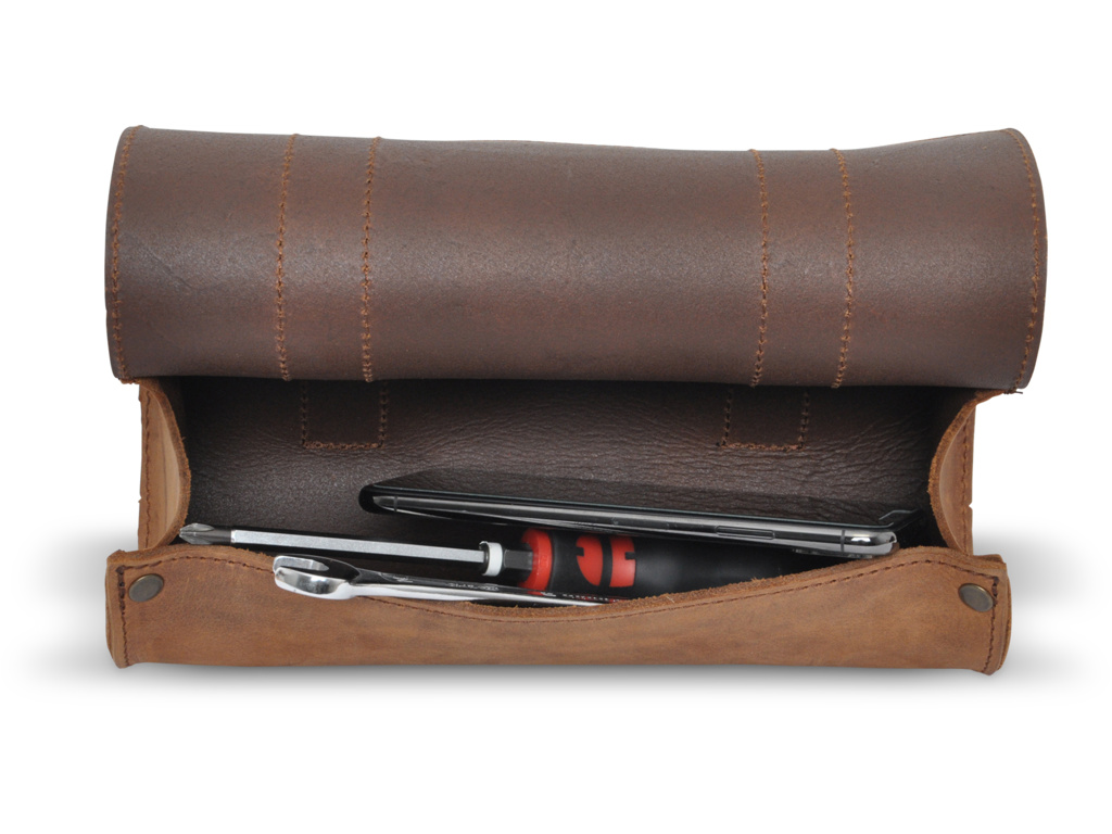 Kožená taška na riadidlá RUFF je štýlový a funkčný doplnok navrhnutý pre cyklistov, ktorí ocenia klasický vzhľad a praktické využitie. Vyrobená z vysoko kvalitnej kože, ponúka kapacitu dostatočnú pre každodenné potreby, ako sú kľúče, peňaženka alebo telefón. Taška je navrhnutá tak, aby bezpečne sedela na riadidlách, a vďaka svojmu dizajnu skvele dopĺňa retro štýl bicyklov značky Ruff Cycles.