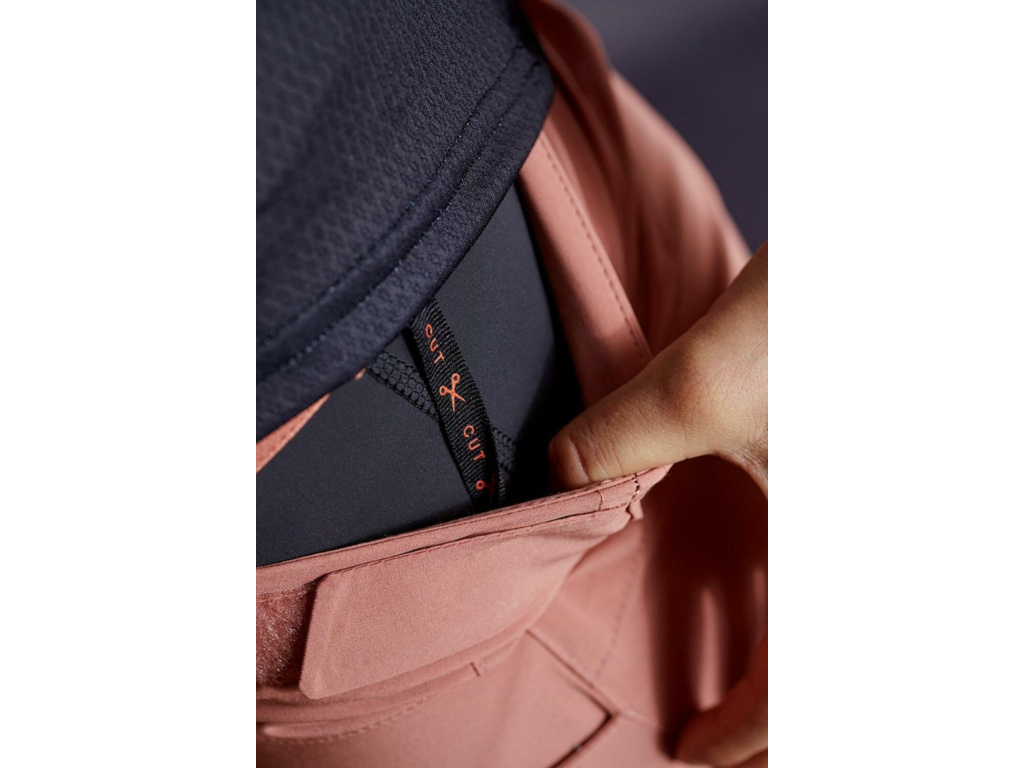 Nastavitelný pas umožňuje přesné doladění obvodu, zatímco promyšlený systém kapes – dvě přední kapsy a boční cargo kapsa na zip – nabízí dostatek úložného prostoru. Odnímatelné vnitřní kalhotky jsou vybaveny bezešvou cyklovložkou Vuelta, která zajišťuje komfort při jízdě a lze je nosit i samostatně. Odolnost zvyšují trojité švy, rychleschnoucí materiál pak přispívá k pohodlí při celodenním ježdění. Funkční konstrukce a důraz na detaily odpovídají filozofii značky Maloja.