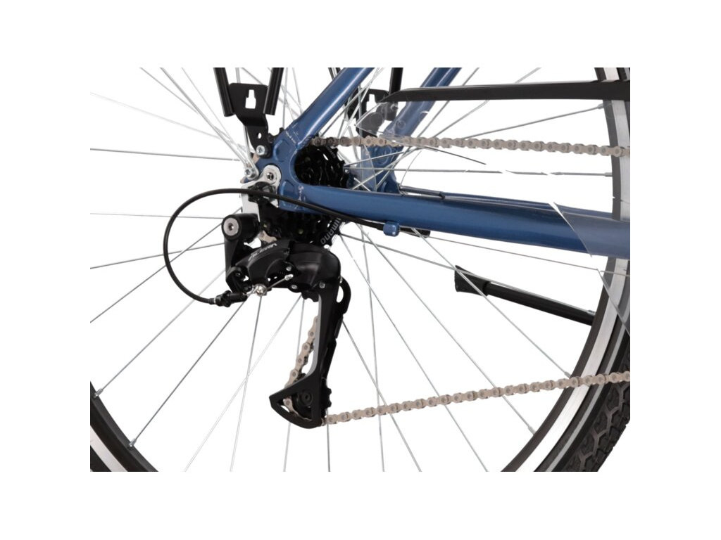 Každodenná jazda do práce aj na nákupy, víkendové výjazdy do prírody a objavovanie nových cyklotrás. Tam všade sa hodí KROSS Trans 4.0 Lady. Ak hľadáte jednoduchú eleganciu a kvalitu za rozumnú cenu, nasadnite na všestranný 28-palcový dámsky bicykel s odpruženou vidlicou SR Suntour pre vaše pohodlie, radením SHIMANO s 3x7 prevodmi, spoľahlivými brzdami, ale predovšetkým praktickým vybavením – blatníkmi, stojanom, zadným nosičom a svetlami.
