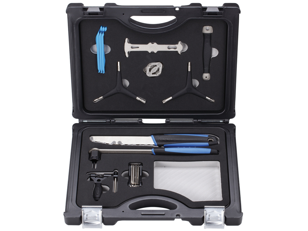 Extra silný kufrík s 10 najbežnejšími nástrojmi. Vynikajúci základ pre jazdcov, ktorí začínajú s údržbou. Penové polstrovanie udrží náradie na svojom mieste, zatiaľ čo priestor