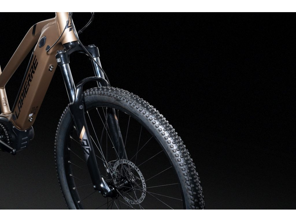 MTB e-hardtail LAPIERRE Overvolt HT 5.5 s motorom Bosch Performance a batériou s kapacitou 500 Wh má pevný hliníkový rám zo zliatiny Supreme 5 a odpruženú vidlicu SR Suntour, zaisťujúcu 120mm zdvihu, pre vaše maximálne pohodlie. Okrem vidlice výbavu modelu tvorí spoľahlivé radenie Shimano a brzdy Tektro. Kombinácia týchto komponentov vám zaručí istotu, pohodlie a výkon počas vašich ciest po cyklotrasách, v lese aj na horách. Verzia MID má zníženú hornú rámovú trubku pre pohodlný výstup aj nástup.