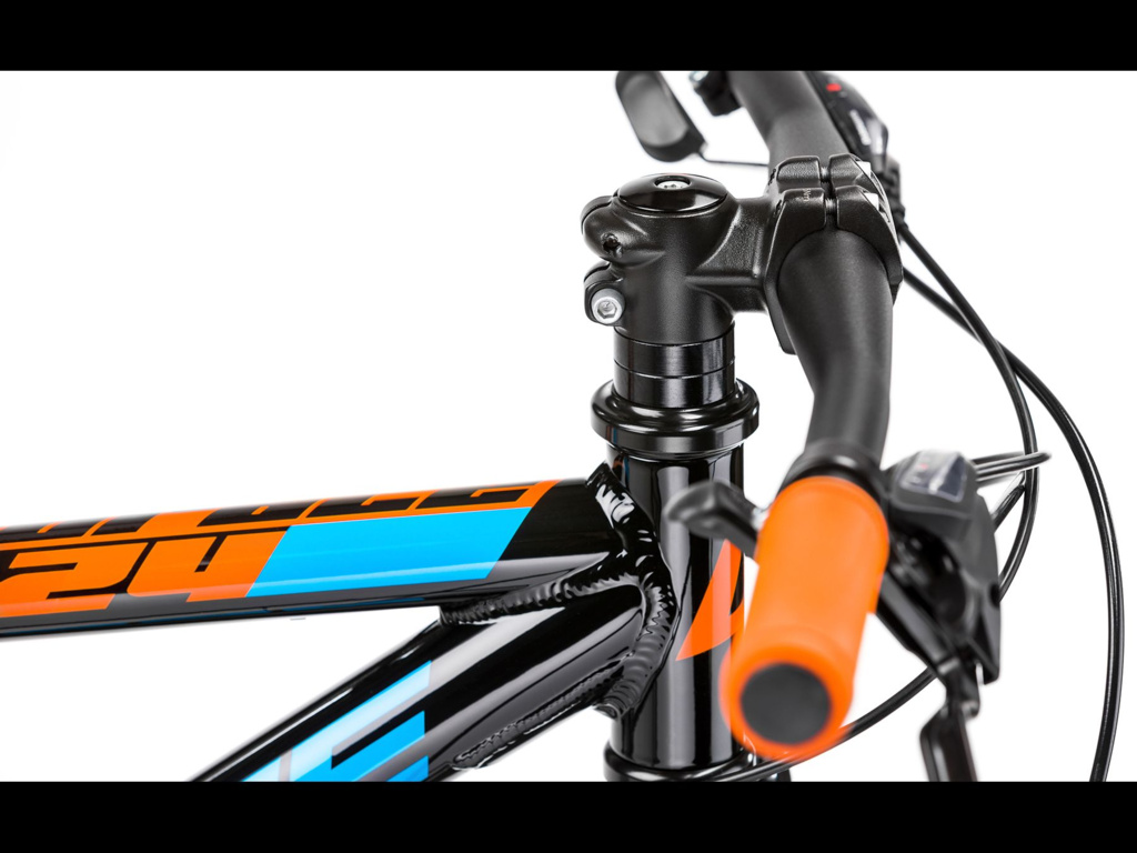 Chlapčenský bicykel s 24" kolesami vhodné pre deti s výškou postavy od 125 do 155 cm. Tento bike je určený deťom, má už ale veľa vymožeností, ktoré poznáme z dospelých modelov. Rám z ľahkej hliníkovej zliatiny Supreme 4 je osadený odpruženou vidlicou SUNTOUR a kvalitnými komponenty SHIMANO s 21 prevodmi a páčkovým radením. Nechýba samozrejme lakovanie v kontrastných farbách, ktoré sa páči deťom a je dobre vidieť na ceste.