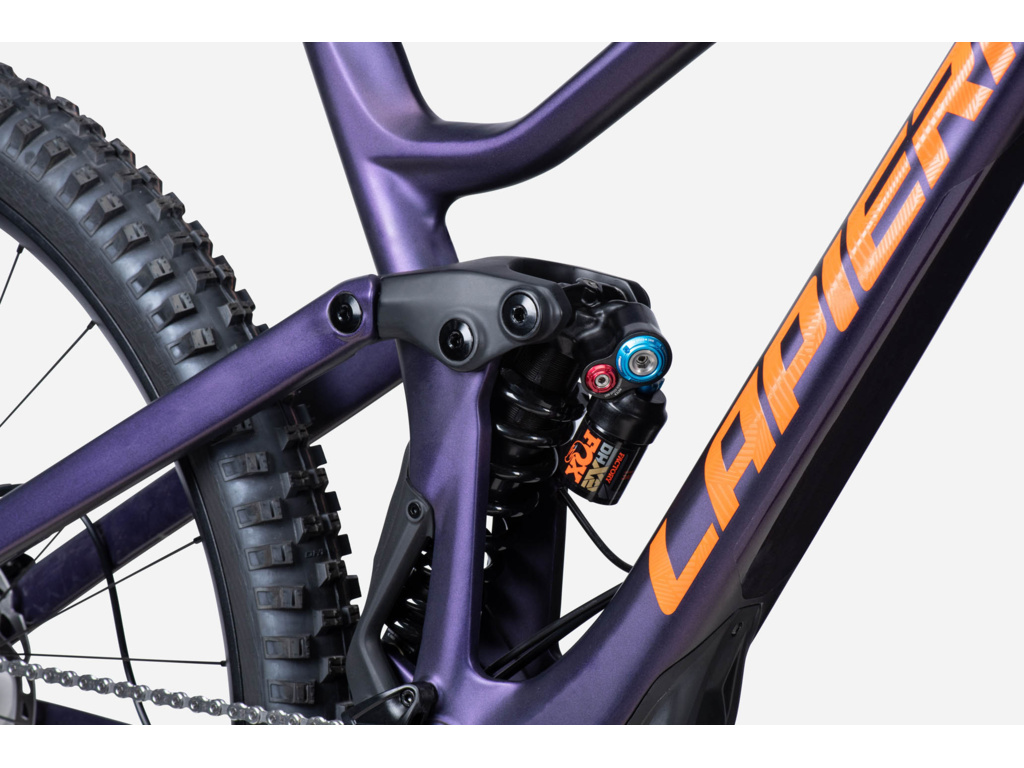 Karbónový enduro stroj LAPIERRE Spicy 7.9 sa pýši výbornou stabilitou a výnimočnými jazdnými vlastnosťami nielen v zjazdoch. O maximálny výkon v teréne sa celý čas stará vidlica Fox 38 Float Factory Kashima a tlmič FOX DHX2 Factory.