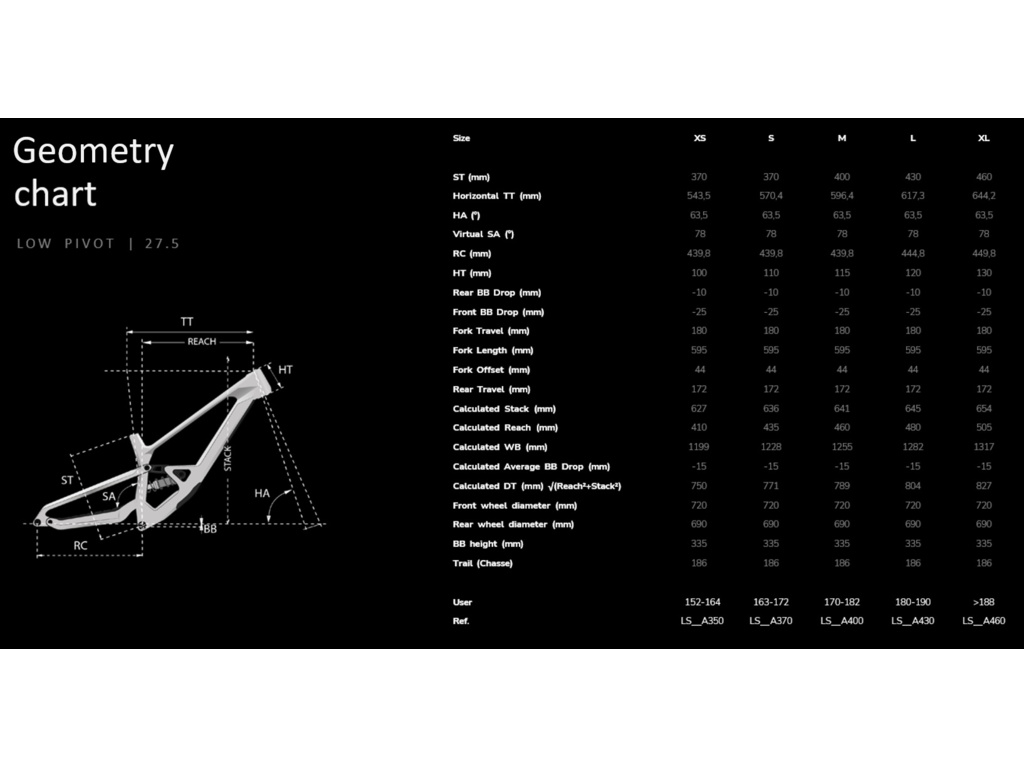 UHOL HLAVOVEJ TRUBKY – Uhol hlavovej trubky sleduje vývoj zdvihu predného kolesa (+10 mm) s otvorenejším uhlom, ktorý sa prispôsobuje 180 mm vidlici. Táto požiadavka prišla aj od jazdcov tímu Lapierre Zipp Collective, ktorí hľadali väčšiu stabilitu a presnosť pre rýchle zákruty a zjazdy.