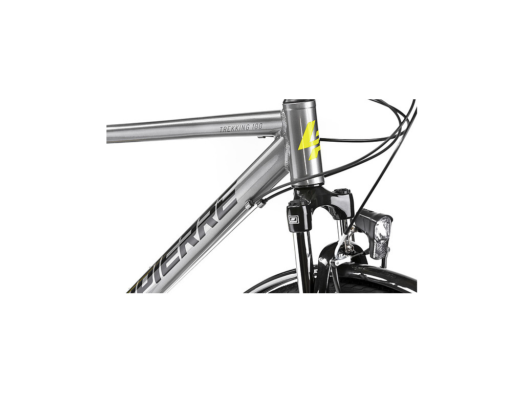 Pánsky trekingový bicykel Lapierre Trekking 100 je správnou voľbou na výlety mimo mesta, ale aj na každodenné dochádzanie do práce. Kvalitný ľahký hliníkový rám je vybavený odpruženou vidlicou Suntour, komponentmi Shimano s prevodmi 3x7 a bezpečným r