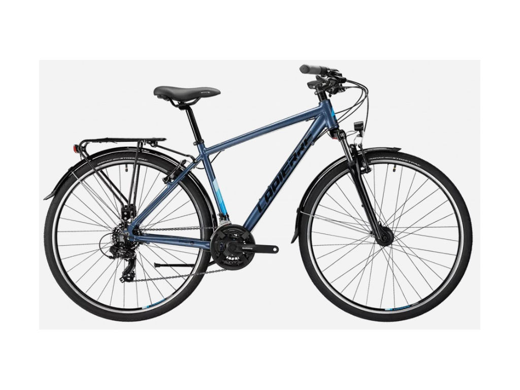 Pánsky trekingový bicykel LAPIERRE Trekking je tou pravou voľbou pre rekreačné jazdy po meste aj do prírody. Je vybavený množstvom praktických doplnkov, ktoré vám spríjemnia cestu. Výkonné osvetlenie sa postará o to, aby ste boli vidieť a zároveň ste mali dostatočný rozhľad. Nechýbajú blatníky ani stojan. Dochádzanie do práce aj do obchodu sa stane skutočným potešením vďaka pevnému a ľahkému hliníkovému rámu, pohodlnému sedlu SELLE ROYAL, kvalitným komponentom SHIMANO a odpruženej vidlici SUNTOUR, ktorá výborne absorbuje otrasy spôsobené nerovnosťami cesty.
