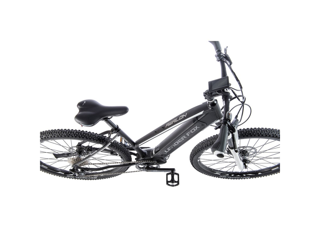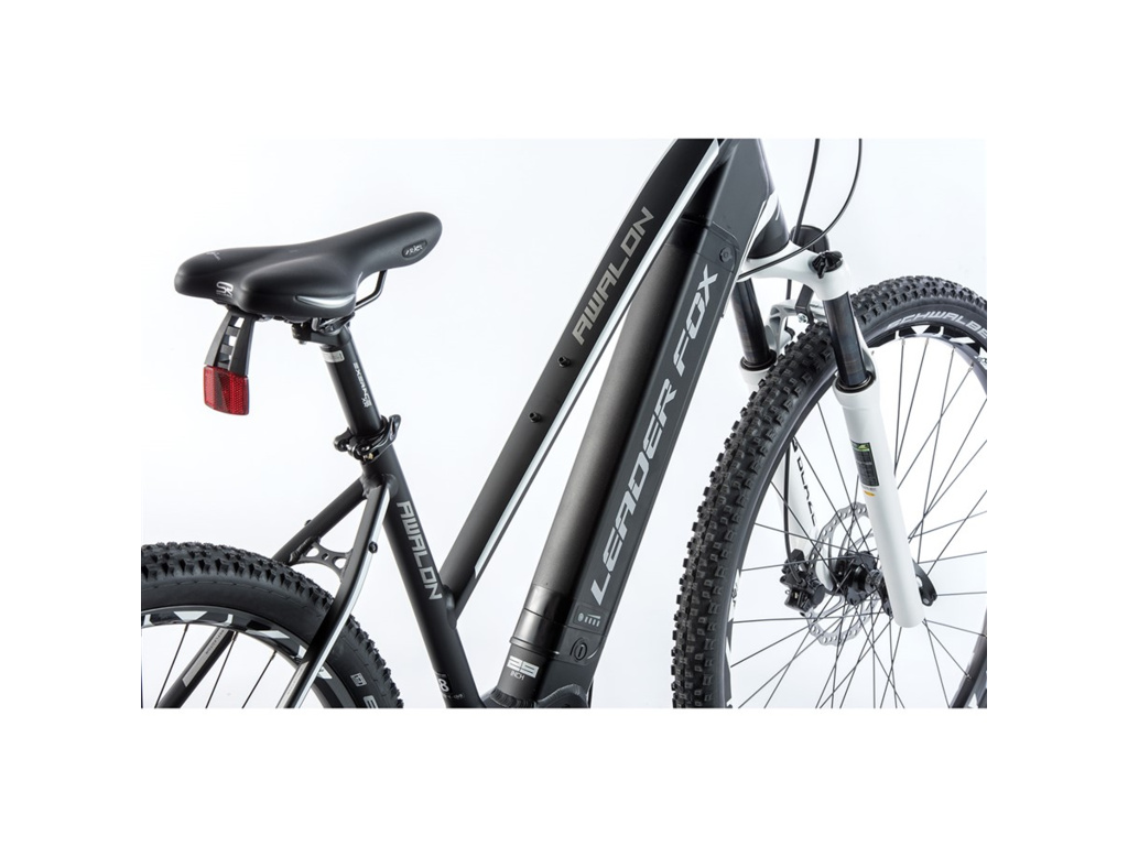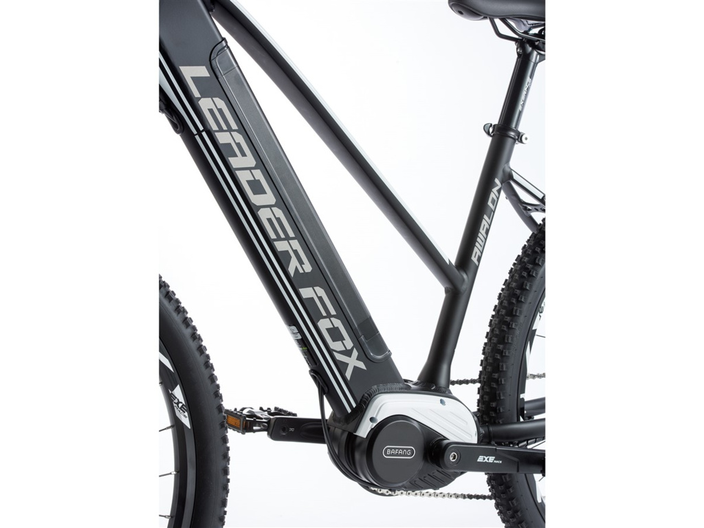 Horský elektrobicykel Leader Fox AWALON na 29-palcových kolesách. Hliníkový rám so športovým dizajnom a geometriou je vybavený výkonným stredovým motorom Bafang Modest a integrovanou vysokokapacitnou 630 Wh rámovou batériou. Novinkou je integrovaná rámová batéria s výkonnými článkami SAMSUNG s kapacitou 17,5 Ah (630 Wh) a výstupom USB (možno použiť na nabíjanie telefónu, navigácie atď.). Ďalším plusom je nová rýchlonabíjačka s nabíjacím prúdom 3 A (predtým 1,8 A), ktorá výrazne skracuje čas nabíjania batérie. Model Leader Fox AWALON je vybavený stredovým motorom Bafang Modest s nominálnym výkonom 250 W a maximálnym výkonom 350 W. Tento motor sa okrem iného môže pochváliť vysokým krútiacim momentom, ktorý môže dosiahnuť až 80 Nm, a je vybavený snímačom torznej sily. To znamená, že čím väčšou silou cyklista šliape do pedálov, tým väčšou silou mu motor pomáha. Systém sa ovláda prostredníctvom farebného LCD displeja