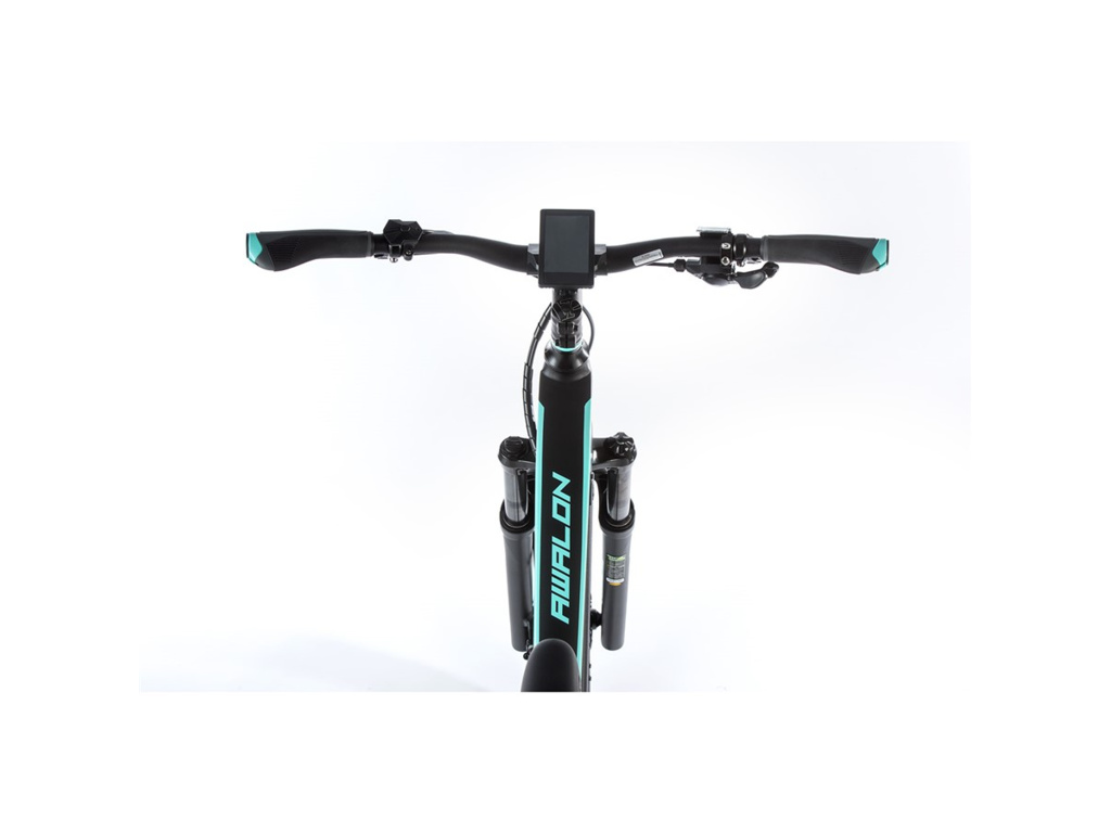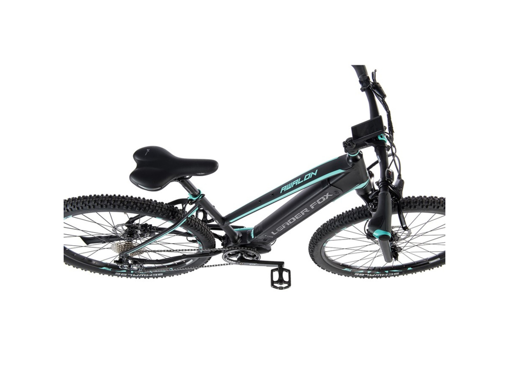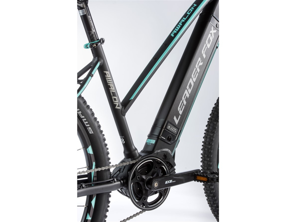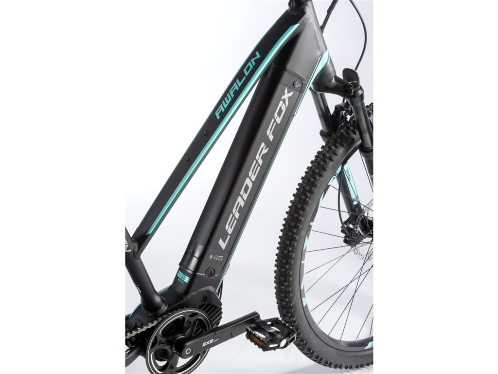 Horský elektrobicykel Leader Fox AWALON na 29-palcových kolesách. Hliníkový rám so športovým dizajnom a geometriou je vybavený výkonným stredovým motorom Bafang Modest a integrovanou vysokokapacitnou 630 Wh rámovou batériou. Novinkou je integrovaná rámová batéria s výkonnými článkami SAMSUNG s kapacitou 17,5 Ah (630 Wh) a výstupom USB (možno použiť na nabíjanie telefónu, navigácie atď.). Ďalším plusom je nová rýchlonabíjačka s nabíjacím prúdom 3 A (predtým 1,8 A), ktorá výrazne skracuje čas nabíjania batérie. Model Leader Fox AWALON je vybavený stredovým motorom Bafang Modest s nominálnym výkonom 250 W a maximálnym výkonom 350 W. Tento motor sa okrem iného môže pochváliť vysokým krútiacim momentom, ktorý môže dosiahnuť až 80 Nm, a je vybavený snímačom torznej sily. To znamená, že čím väčšou silou cyklista šliape do pedálov, tým väčšou silou mu motor pomáha. Systém sa ovláda prostredníctvom farebného LCD displeja