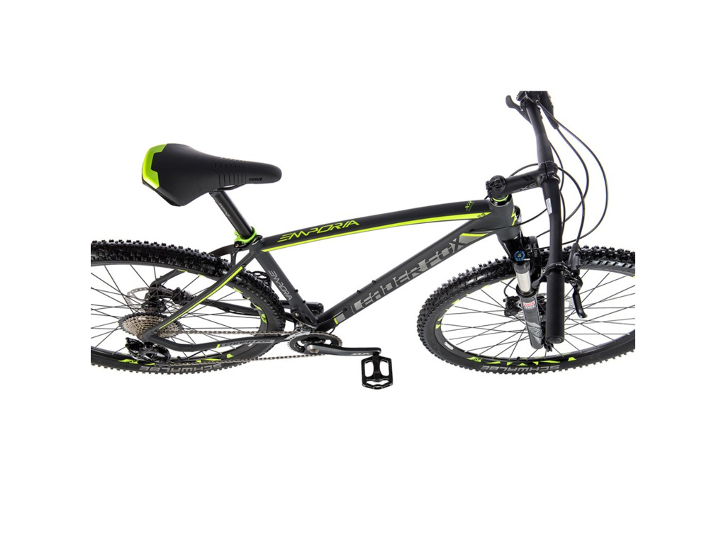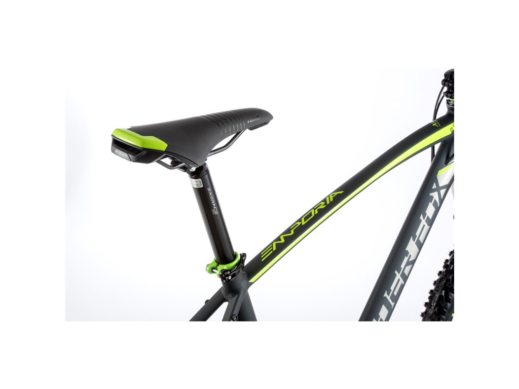 Leader Fox Emporia je najvyšší model medzi 29" jazdenými bicyklami, ktorý ponúka kombináciu veľmi slušných komponentov a priateľskú hmotnosť 12,4 kg vo veľkosti 20" za rozumnú cenu. Základom je ľahký hliníkový rám, ktorý je osadený tlmičom Rock Shox